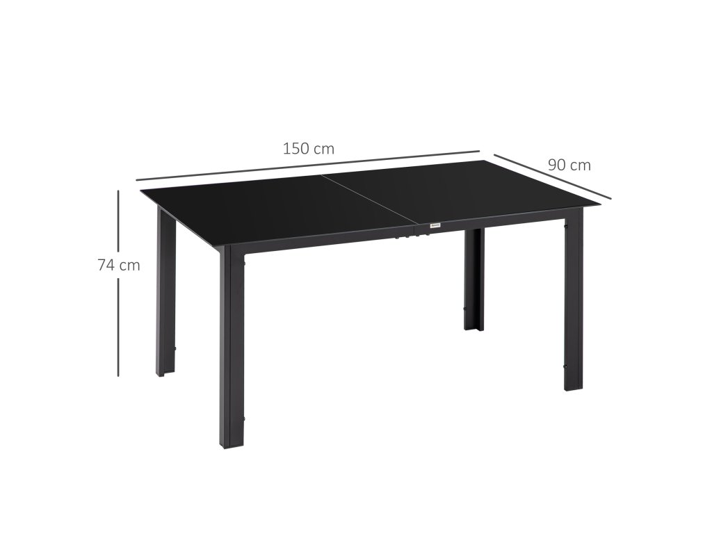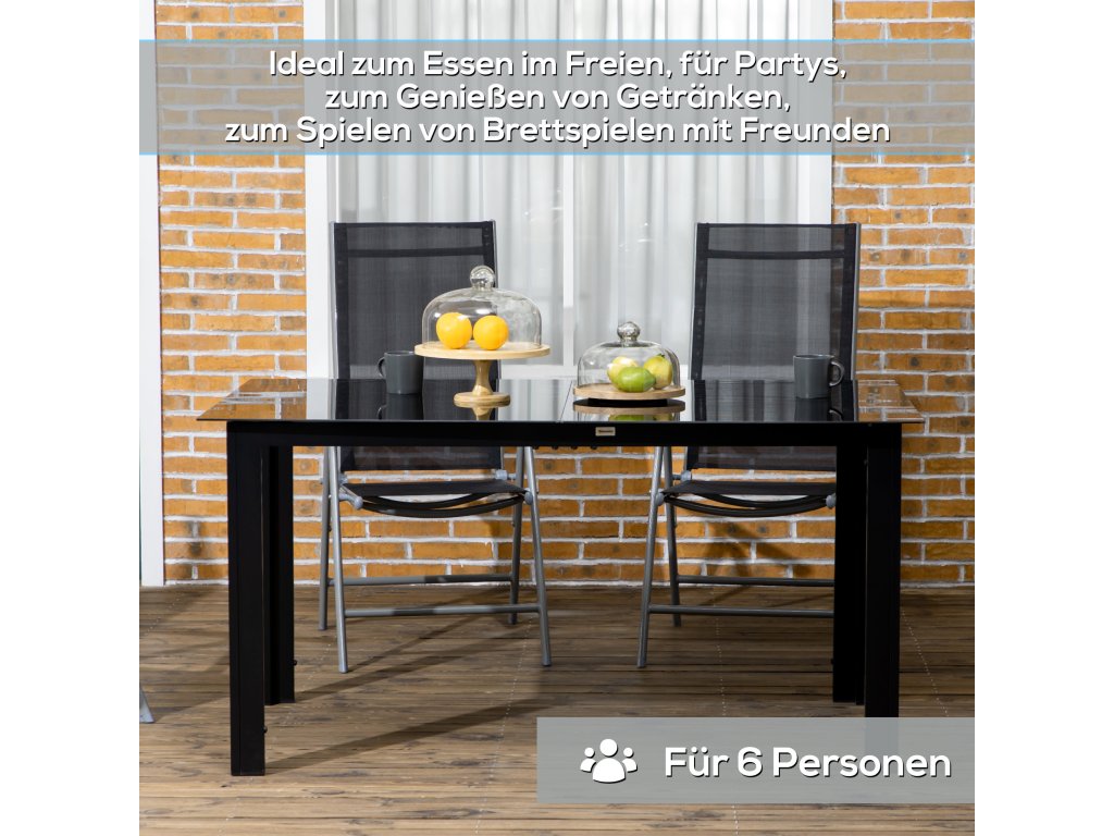 Zahradní stůl Outsunny pro 6 osob, odolný proti povětrnostním vlivům, tvrzené sklo, stůl na terasu, 150 cm x 90 cm x 74 cm, černý