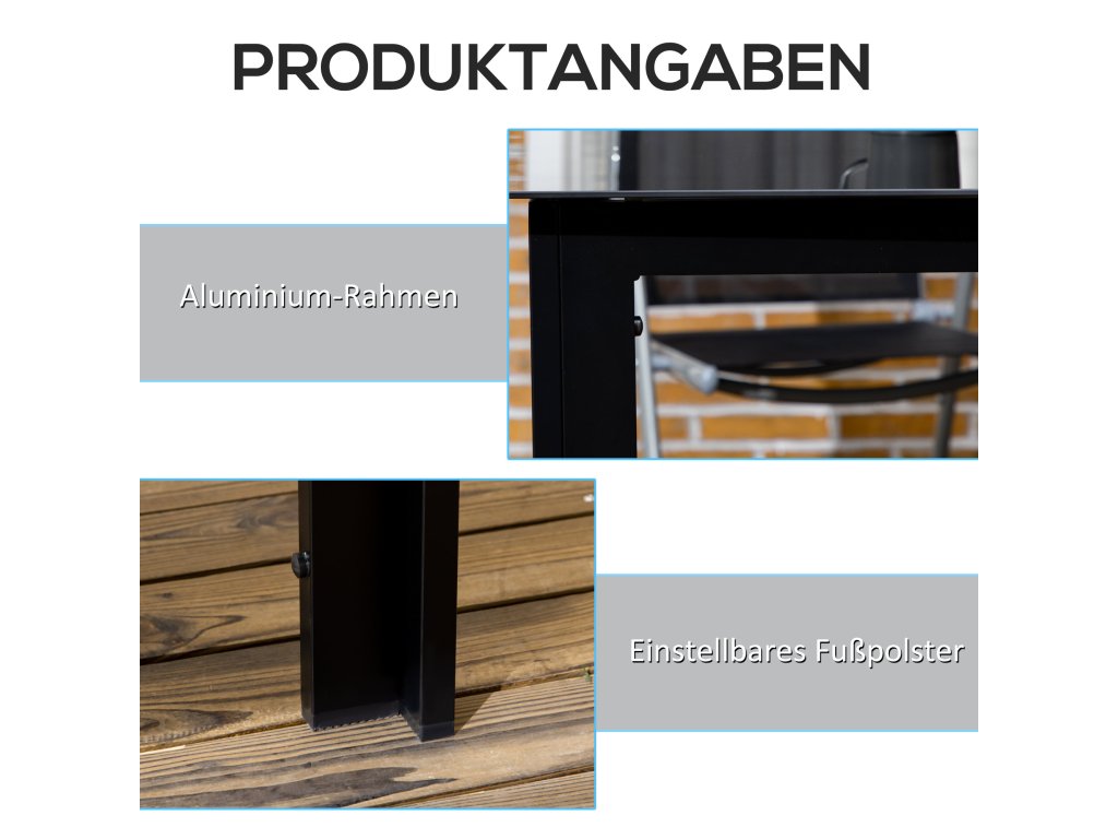 Chcete si číst venku? Potřebujete stůl? Tento zahradní stůl od společnosti Outsunny bude ozdobou každé zahradní party. Stůl má nejen moderní design, ale také se velmi snadno čistí a je stabilní. Robustní hliníkový rám a deska stolu z tvrzeného skla jsou odolné a snadno se čistí. Tento stůl je vhodný na zahradu, terasu, verandu a mnoho dalšího. Vychutnejte si venkovní večeři nyní s tímto zahradním stolem od společnosti Outsunny.