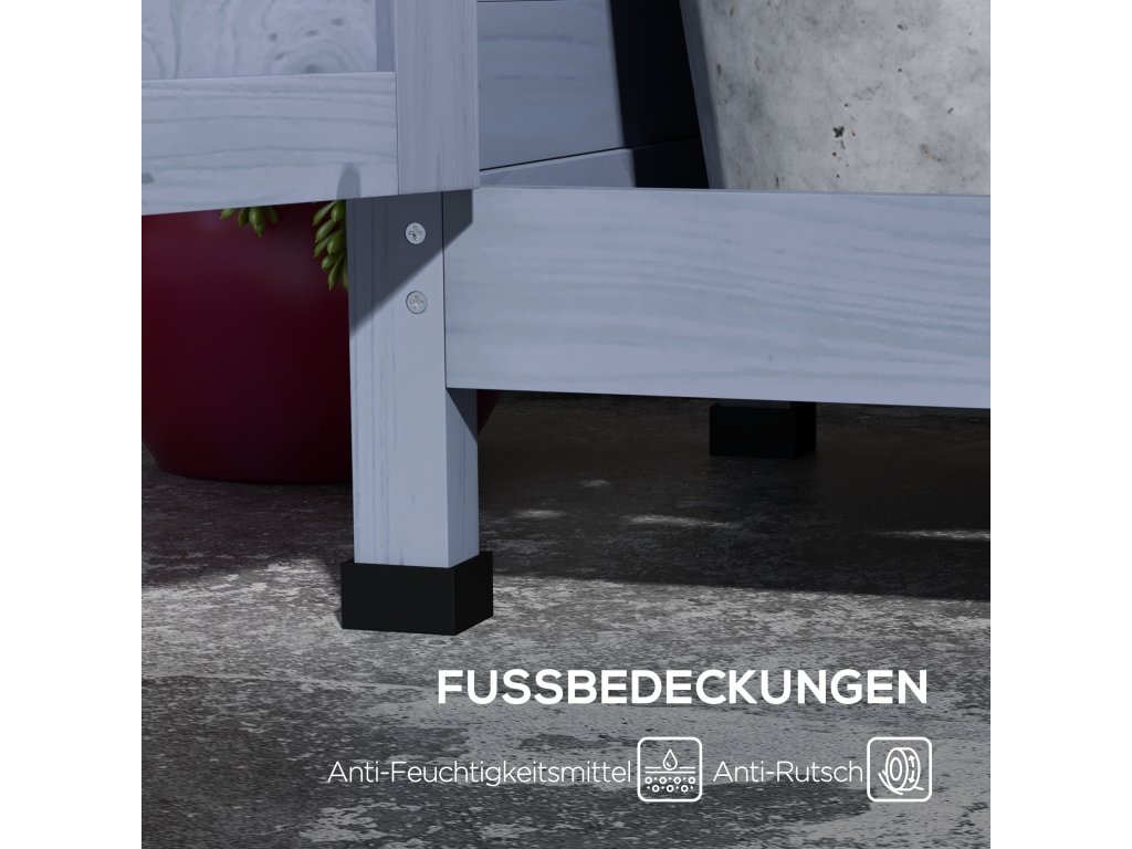 - Stabilní a šetrný k podlaze: Díky gumovým nohám stojí tento zahradní stůl s přihrádkou na skříně pevně a bezpečně, aniž by poškodil podlahu. To znamená, že můžete své rostliny v květináčích postavit bezpečně a bez kývání