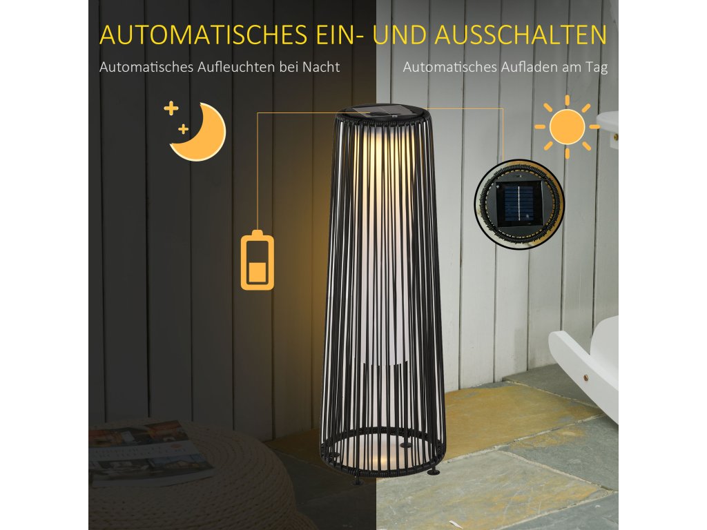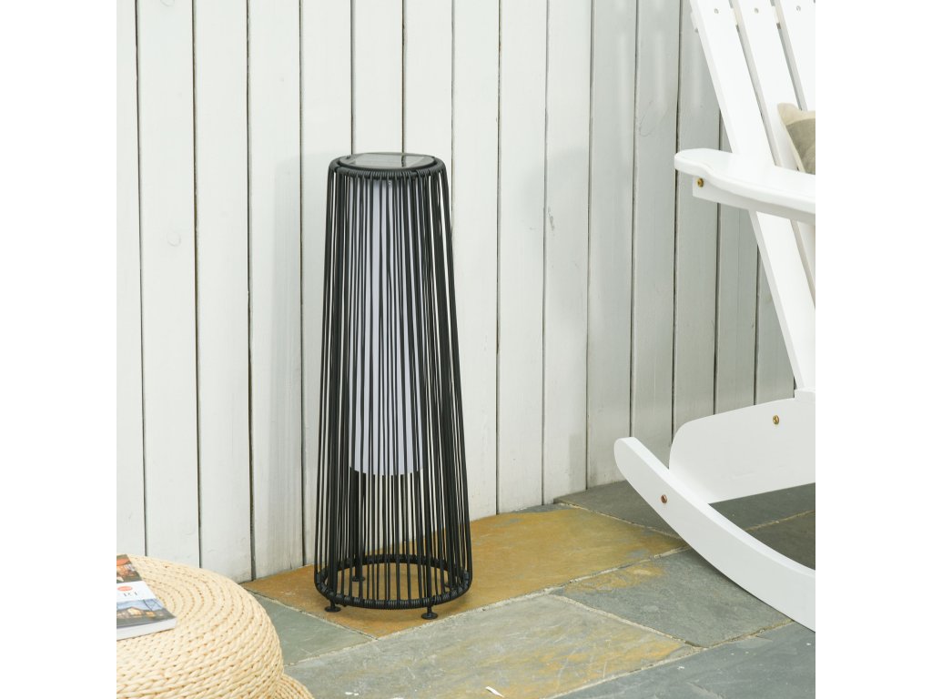 Zahradní světlo Outsunny, venkovní lampa, solární napájení, 8 hodin provozu, vzhled ratanu, černá, 21,5 x 21,5 x 61 cm
