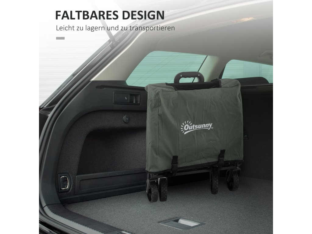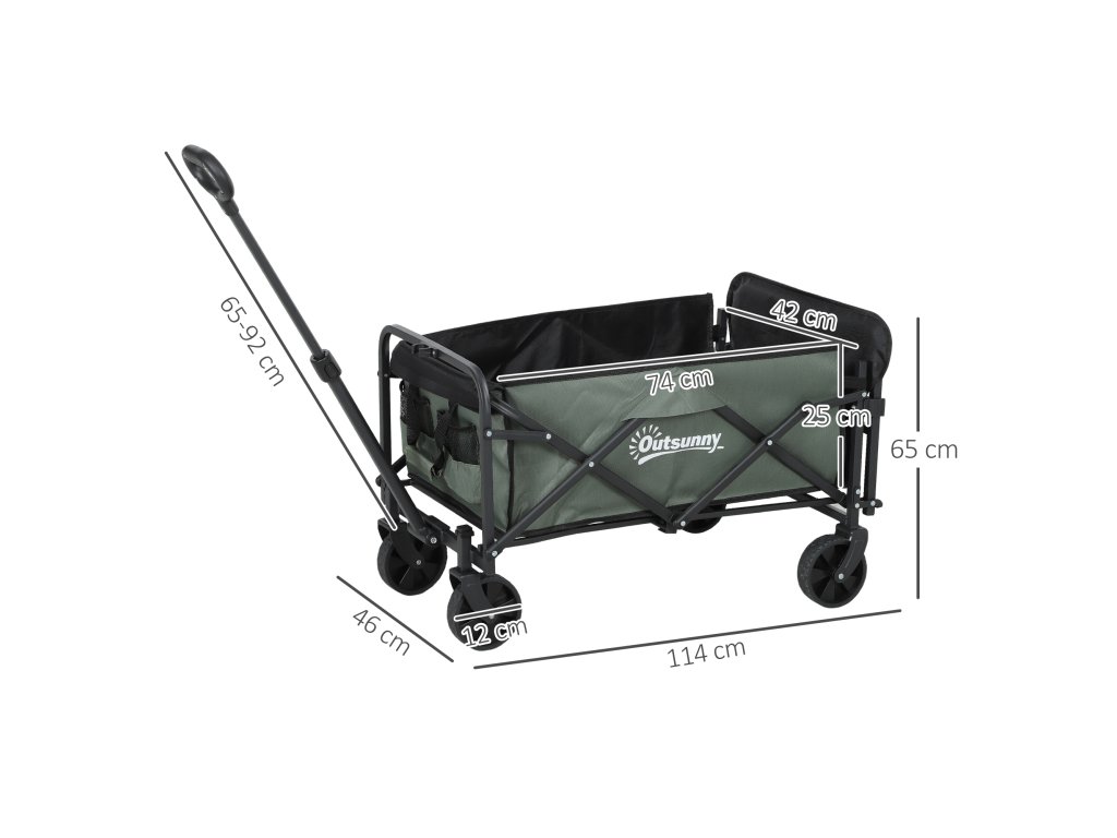Vyzkoušejte pohodlí skládacího ručního vozíku Outsunny, spolehlivého partnera pro každé outdoorové dobrodružství! Tento plážový vozík s objemem 72 l a užitečnými úložnými kapsami usnadňuje přepravu vybavení. Odolná, snadno udržovatelná tkanina 600D Oxford a nerezavějící rám skládacího vozíku s patníky zaručují připravenost k použití - ať už na pláži, v kempu nebo na zahradě. Snadno se skládá a ukládá - inteligentní řešení pro přepravu!