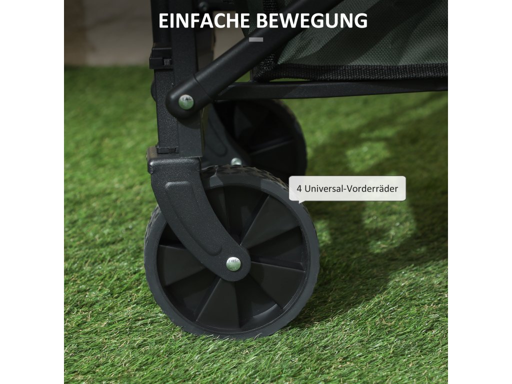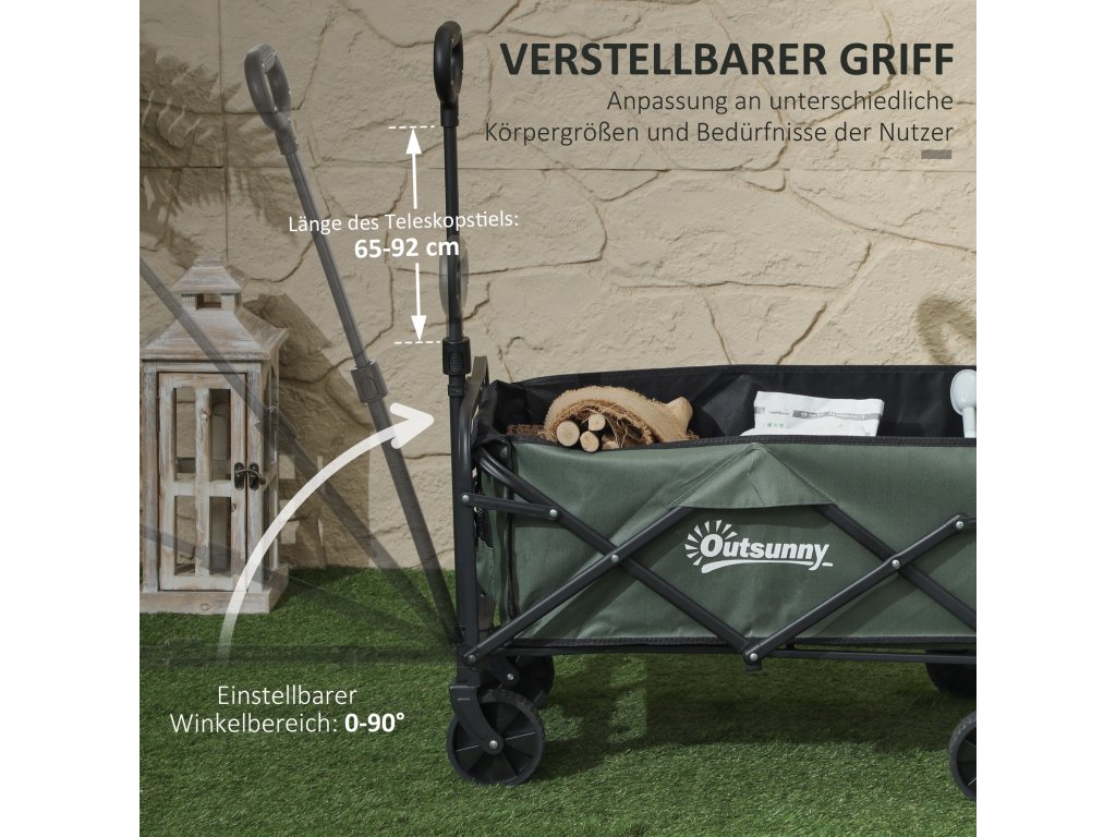 Zahradní vozík Outsunny 90 kg nosnost, skládací přepravní vozík s odnímatelnou plachtou, rukojetí, kolečky 72 litrů zelený