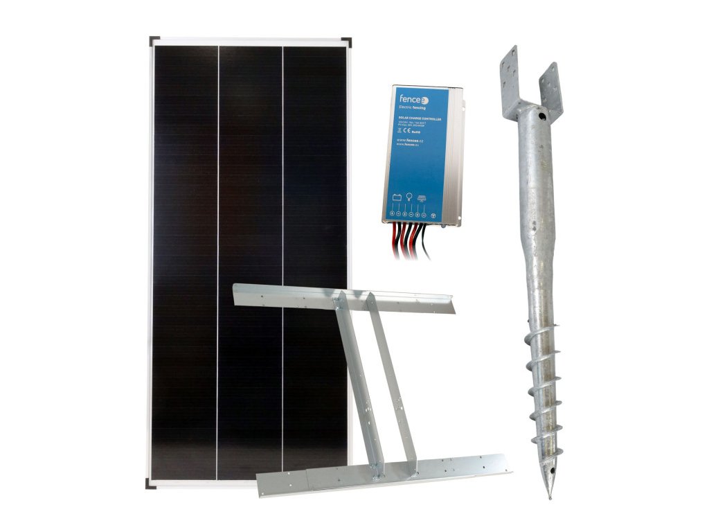 Základní sada solární napájení ohradníku, panel 200 W, držák zemní vrut, konzole, regulátor 15 A