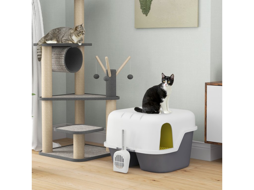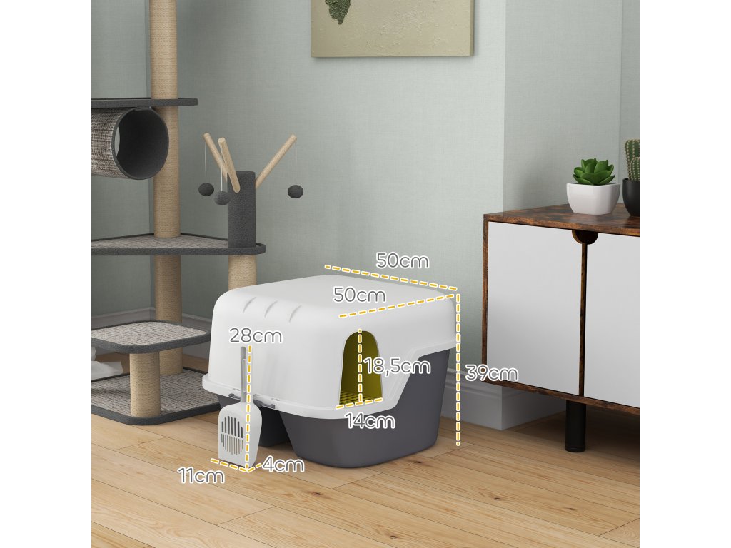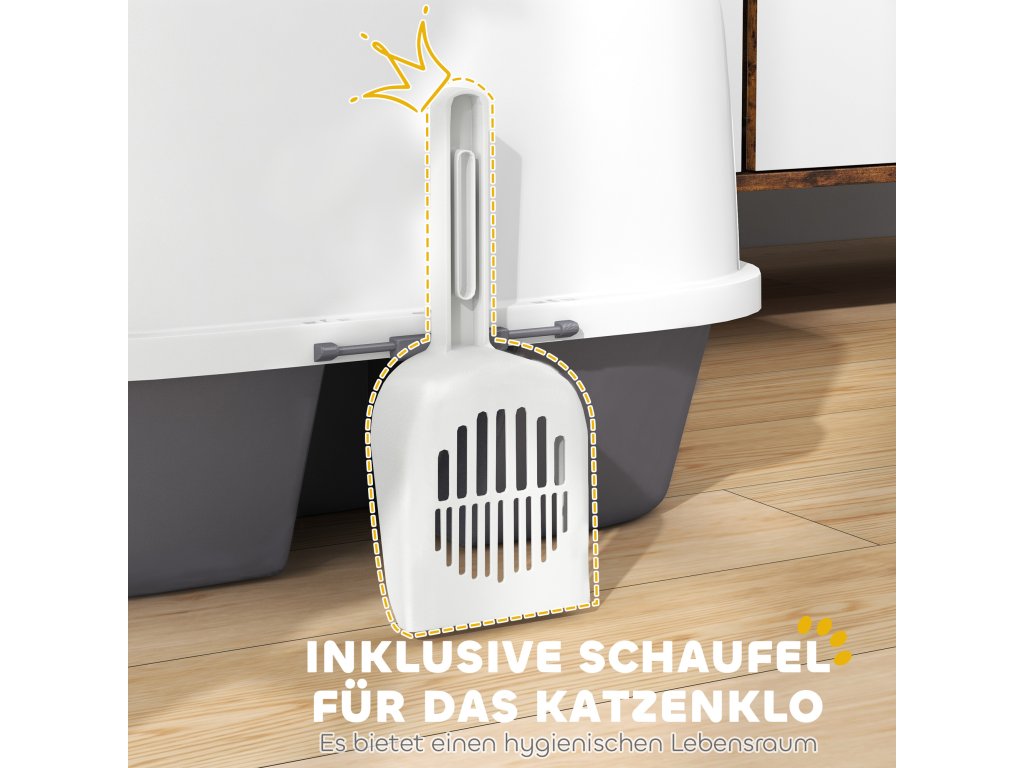 Zásobník na stelivo PawHut, zásobník na kočičí stelivo s víkem a lopatkou, snadno čistitelný, uzavíratelný, bílý