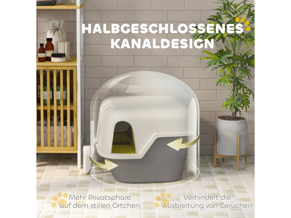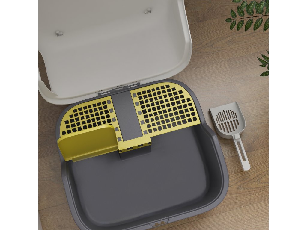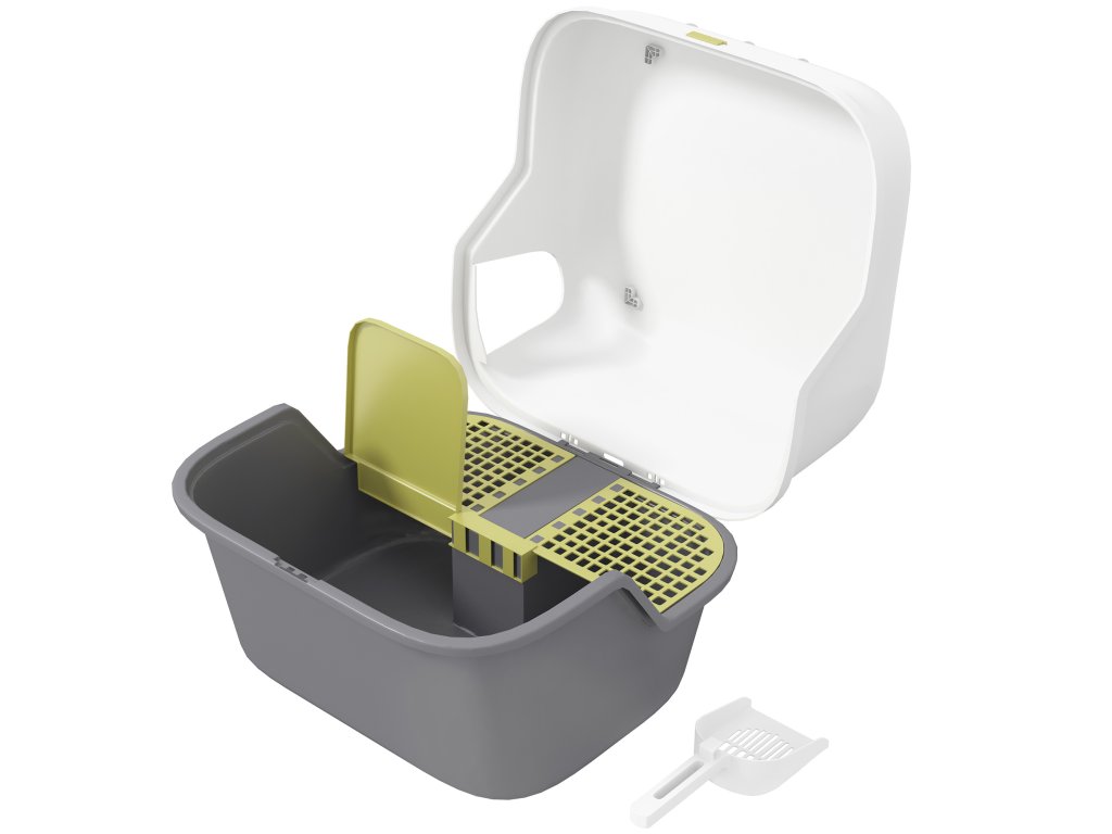 - ✔ Polouzavřená konstrukce misky na stelivo zajišťuje soukromí a omezuje vysypávání steliva