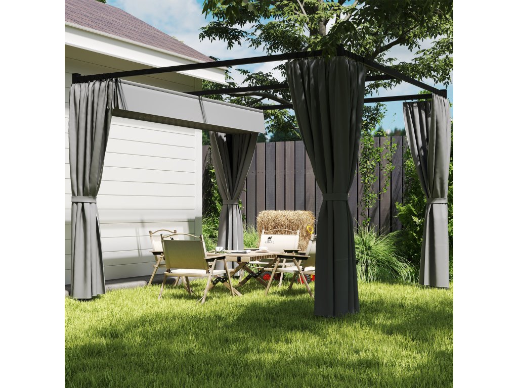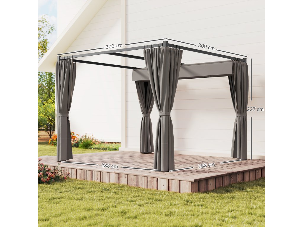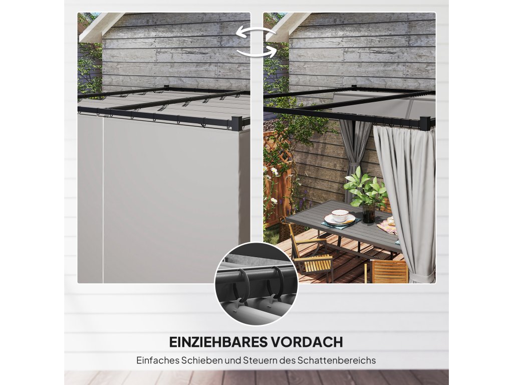 Zastřešená pergola Outsunny 3 x 3 m s posuvnou střechou, 4 boční panely, UV odolná, světle šedá