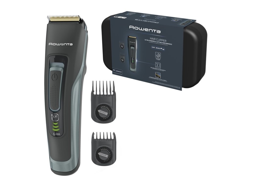 Čepele z nerezové oceli potažené titanem, 2 nastavitelné hřebeny, kompaktní design, omyvatelné čepele, odolné pouzdro.
