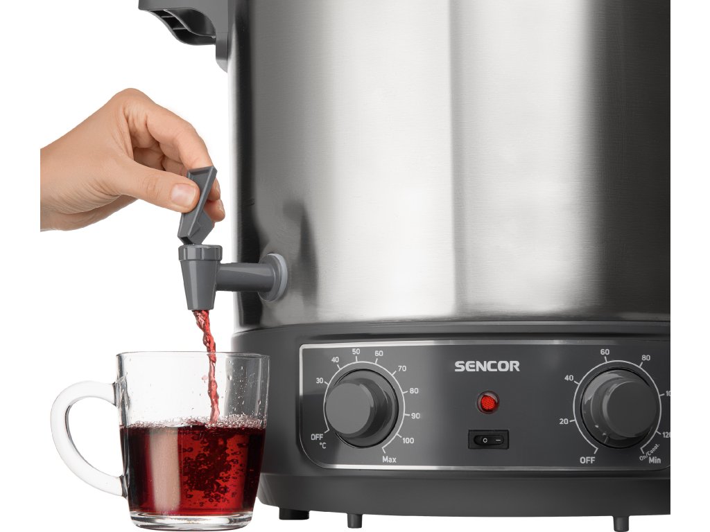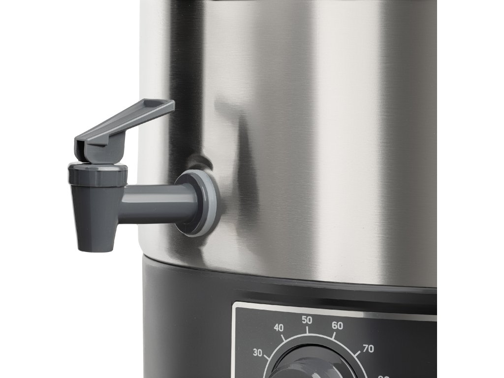 Vestavěný výtokový kohout vhodný pro stáčení např. svařeného vína, čaje, punče nebo jiných horkých nápojů
