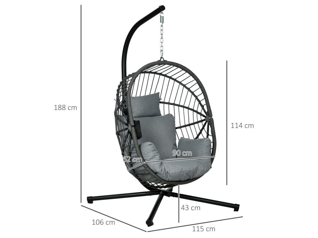 Dodejte svým vnitřním i venkovním prostorům eleganci bez námahy s naším závěsným křeslem Outsunny. Zakřivené opěradlo, prostorný sedák a silně polstrovaný polštář poskytují pohodlné sezení. Závěsný stojan je vyroben z ocelového rámu, který snadno unese až 120 kg a bezpečně vám poskytne naprosté bezpečí při sezení. Díky skládacímu košíku se závěsné křeslo snadno skladuje, šetří místo a je pohodlné.