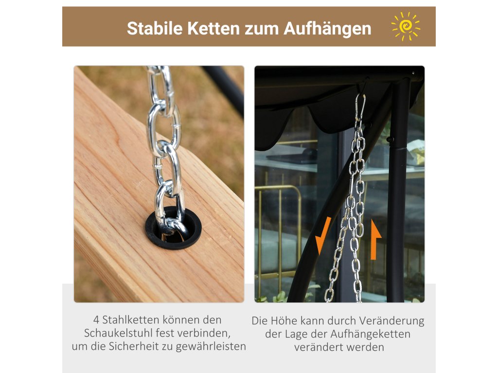 - ✔ Praktická houpací lavice pojme až 3 osoby