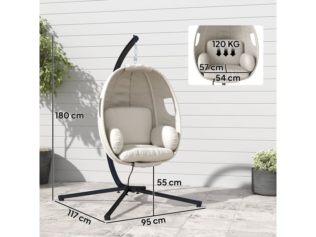 Závěsné křeslo Outsunny s rámem, skládací závěsný koš s tlustými sedáky, nastavitelná výška, bezpečnostní pás do 120 kg