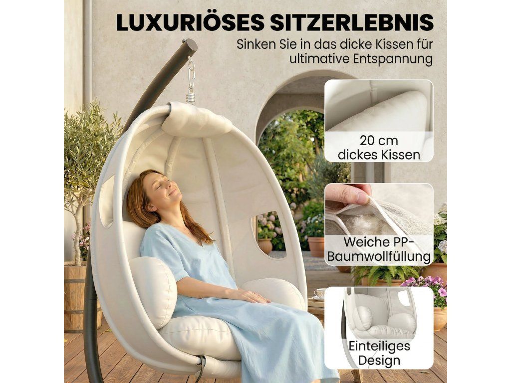 ✔ Zabořte se do 20cm silného měkkého polštáře pro dokonalou relaxaci ve vašem závěsném křesle se stojanem.