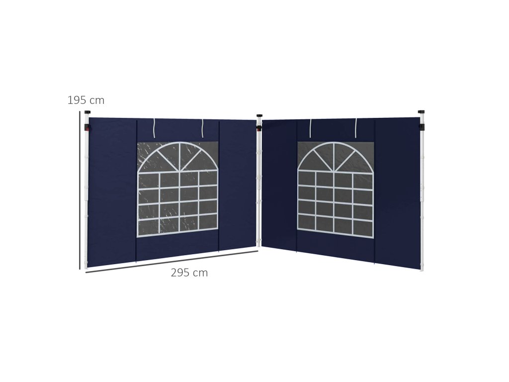 Závěsy do altánů Outsunny, sada 2 kusů, pro zahradní altány 3x6 m nebo 3x3 m, s okny a dveřmi, modrá barva