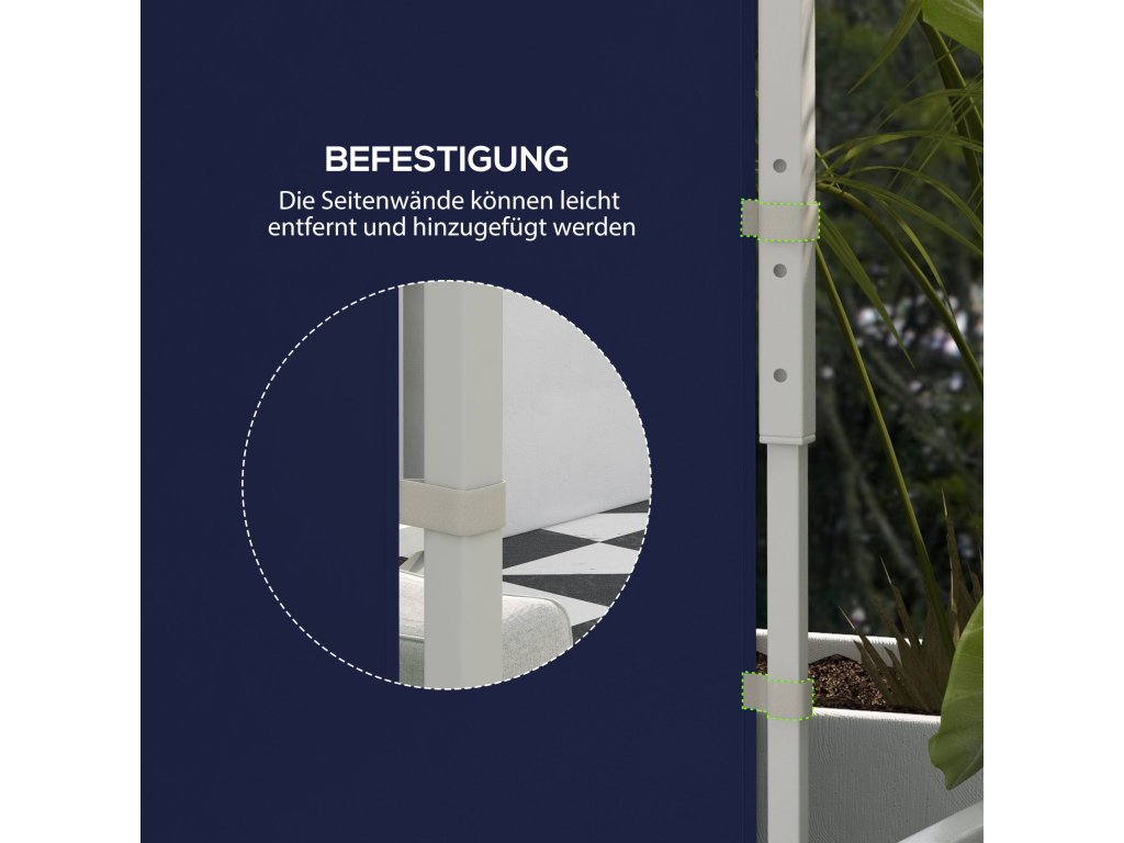 Vdechněte svému zahradnímu altánu nový život s bočními stěnami Outsunny pro altány! Tato sada dvou bočních stěn je vhodná pro většinu skládacích altánů o rozměrech 3 x 3 m nebo 3 x 6 m a je vyrobena z odolného polyesteru Oxford. Má dvouvrstvá rolovací okna pro přístup světla a dveře na zip pro snadný přístup. Díky speciálním popruhům je jeho postavení hračkou. Upozorňujeme, že součástí dodávky jsou pouze boční stěny: Rám altánu není součástí balení.