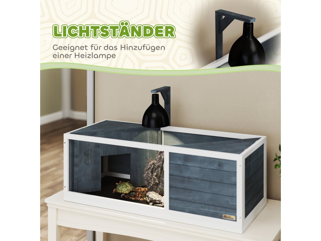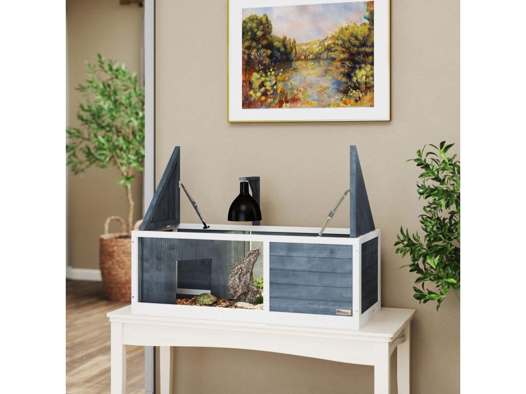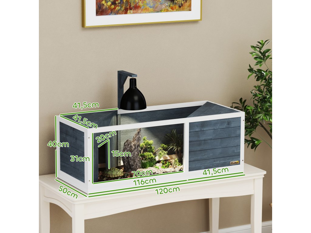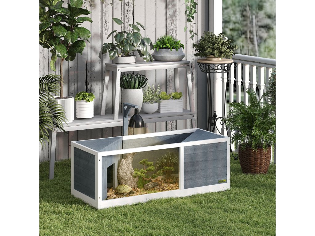Želví domeček PawHut se snadno otevíratelnou horní částí, svítidlo, průhledná přední část, 120 x 50 x 40 cm, šedý