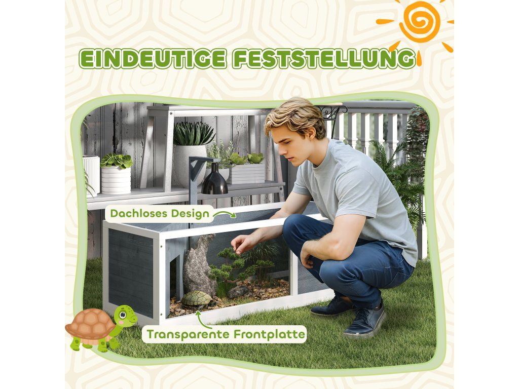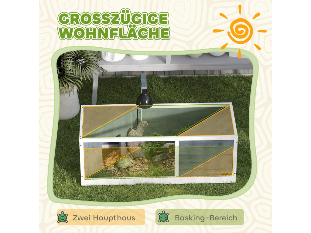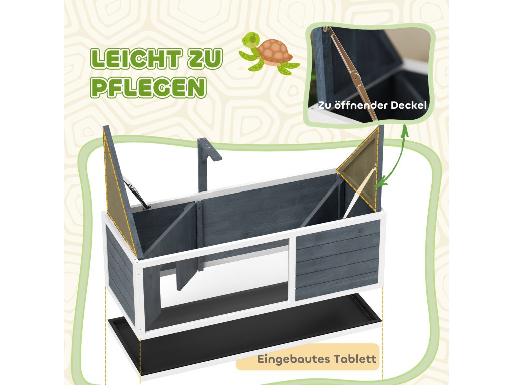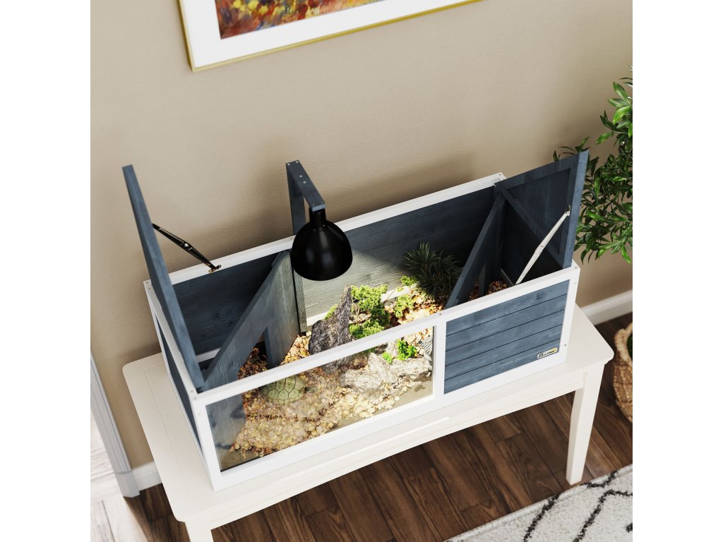 Želví domeček PawHut se snadno otevíratelnou horní částí, svítidlo, průhledná přední část, 120 x 50 x 40 cm, šedý