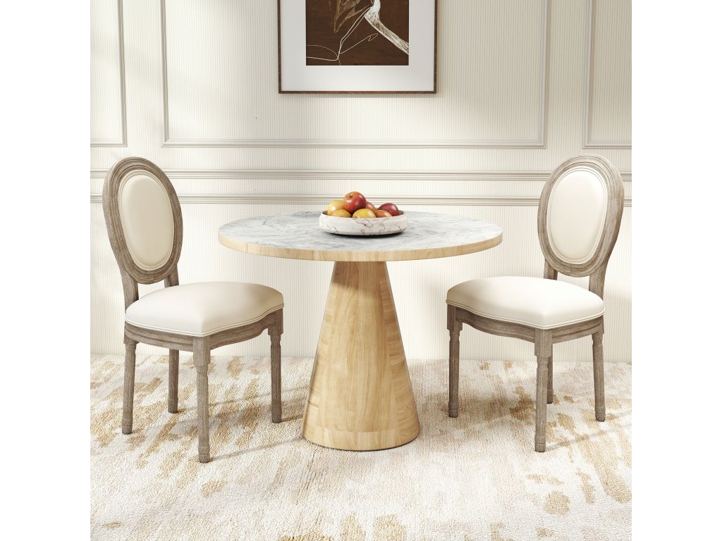 - Všestranné pohodlí: Sedák a opěrák čalouněné židle jsou bohatě polstrované pěnou a čalouněné vzdušnou látkou z umělého lnu, což zajišťuje komplexní pohodlí a jemnou oporu při dlouhém jídle nebo útulné konverzaci.