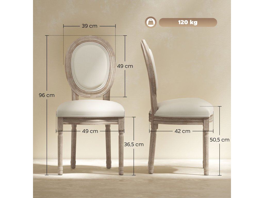 - Všestranné použití v každé místnosti: Díky neutrálnímu barevnému provedení a elegantnímu designu se tyto kuchyňské židle skvěle hodí k sezení v jídelně, jako židle pro líčení nebo jako stylový dekorativní prvek v obývacím pokoji, ložnici či vstupní části.