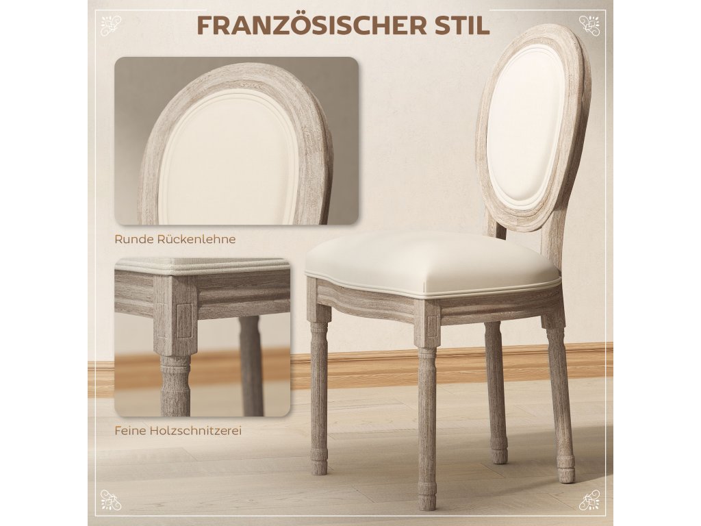 Židle do jídelny HOMCOM, sada 2 kuchyňských židlí s opěradlem, vzhled lnu, křeslo, čalouněná židle, židle, židle do obývacího pokoje s dřevěnými nohami k jídelnímu stolu, krémová bílá + příroda