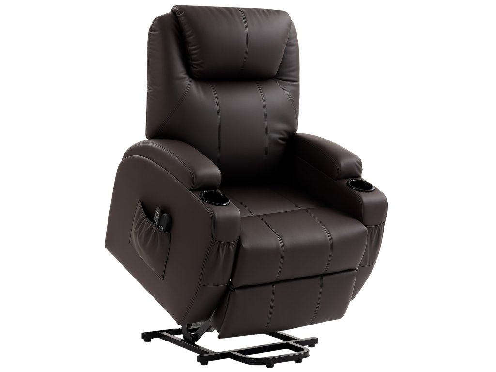 Zvedací křeslo HOMCOM, polohovací křeslo s asistencí při zvedání, vč. dálkového ovládání, držák na nápoje, nastavitelné opěradlo, hnědé